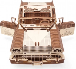 Het model verrast met tal van los meegeleverde details – achter de achterspatborden vind je een koffer met gereedschap en een krik, werkende ruitenwissers, uitschuifbare ruitjes in de deuren en een neerklapbare achterbank. De geveerde wielophanging zorgt voor een realistische rit. De bouwset is gemaakt van kwalitatief triplex en wordt geleverd met een uitgebreide handleiding.