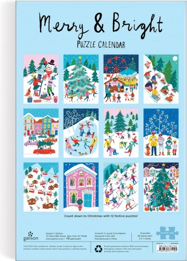 In 12 verschillende puzzels wachten feestelijke scènes die elk gezin zullen betoveren. De Adventskalender Merry & Bright Puzzle is perfect als cadeau of voor winterse gezelligheid. Elke puzzel meet 12,7 x 17,8 cm en is geschikt voor kinderen vanaf 6 jaar.