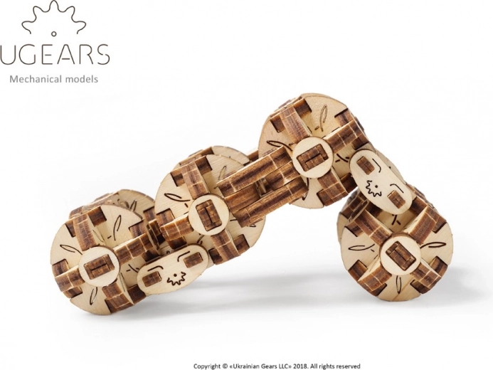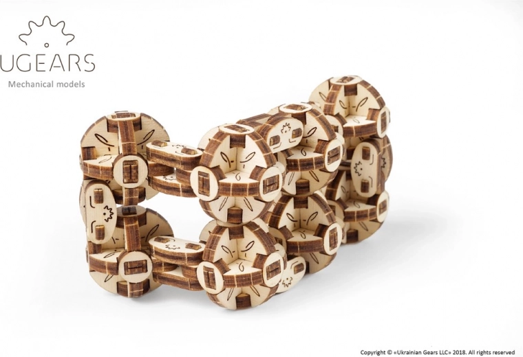 De Flexi Kubus van Ugears is een unieke mechanische 3D-puzzel geïnspireerd op steampunk. Acht onderling verbonden kogelgewrichten maken vloeiend buigen en omkeren mogelijk, zodat je eenvoudig diverse geometrische vormen creëert – van rechthoek tot compacte 3D-kubus. Elke bol is een mini-mechanisme van zes segmenten die door beweeglijke scharnieren zijn verbonden.