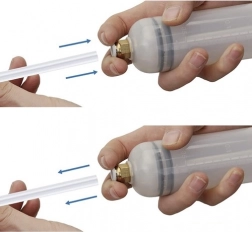 Bevat twee elastische slangetjes met lengtes van 215 mm en 225 mm. Hun afneembare doppen maken eenvoudig gebruik mogelijk en vergroten het bereik van de pomp aanzienlijk.