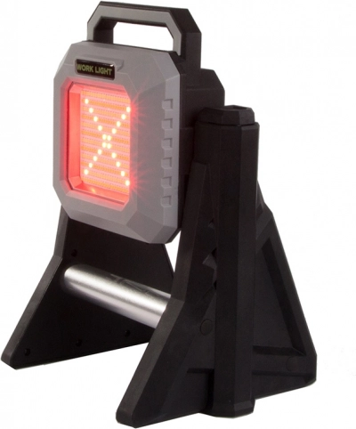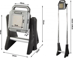 De schijnwerper kan 360 graden draaien, wat zorgt voor optimale plaatsing en stralingshoek. Het is uitgerust met een powerbankfunctie voor het opladen van mobiele apparaten en een LED-indicator voor de batterijstatus.