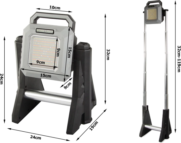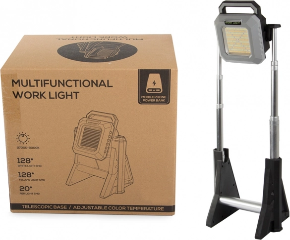 Oplaadbare LED telescopische schijnwerper met verstelbare lichtintensiteit van 750 tot 3000 lumen is ideaal voor het verlichten van magazijnen, werkplaatsen, erven of op uitstapjes. Het is duurzaam, draagbaar en praktisch.