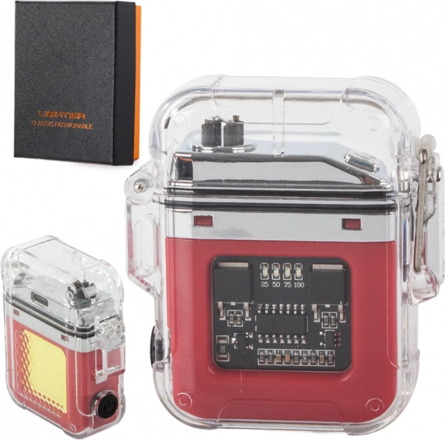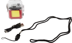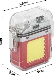 Het verlichtingsdeel van de aansteker bevat een helder en duurzaam brandend lampje met COB LED-technologie. Het biedt drie verlichtingsmodi: 100% vermogen, 50% vermogen en stroboscoopeffect, waarmee het aan verschillende verlichtingsbehoeften kan worden aangepast. De aansteker is verder waterdicht dankzij de afdichting en robuuste behuizing, wat het apparaat tegen water en schade beschermt.