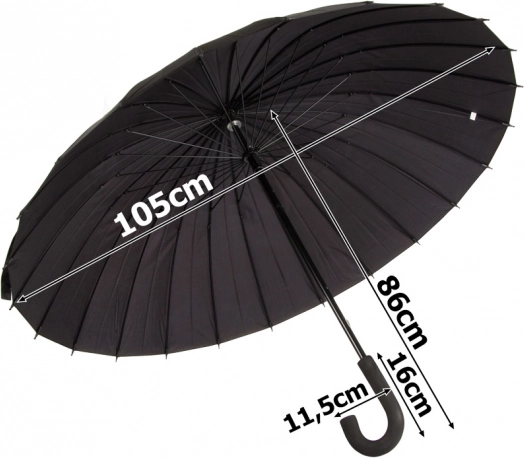 Zoekt u een paraplu die stevige regen en windvlagen aankan en er toch elegant uitziet? Deze grote zwarte paraplu combineert hoogwaardige afwerking, een duurzame constructie en een tijdloos design. Dankzij 24 flexibele spaken van polycarbonaatvezels is hij stabiel en betrouwbaar.