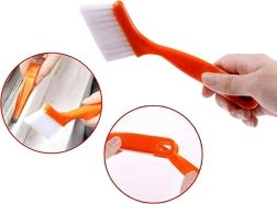 Stevige witte borstels reinigen rails van ramen en deuren, toetsenborden en ventilatieroosters zonder het oppervlak te beschadigen.