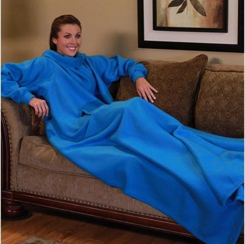 Deze praktische deken met mouwen is ontworpen voor maximaal comfort. In tegenstelling tot klassieke dekens glijdt hij niet weg tijdens het bewegen en dankzij de ruime mouwen blijven je handen vrij om te lezen, je telefoon te bedienen of de afstandsbediening te gebruiken. De zachte fleece houdt je aangenaam warm en is ideaal voor koele avonden.