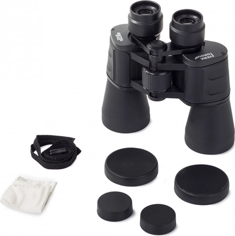 De set bevat accessoires zoals handige oculair- en lenskappen, een reinigingsdoekje en een praktische draagtas met schouderriem, wat transport en bescherming van de verrekijker vergemakkelijkt. Mogelijkheid om op een statief te bevestigen voor comfortabel langdurig kijken.