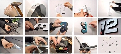 - 3D-cijfers en opschrift, spiegelkapjes, klokmechanisme met wijzers, papieren montagemal, haakjes