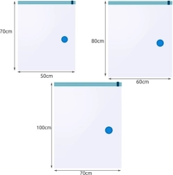 Maak kennis met de universele en praktische set van vacuüm opbergzakken, geschikt voor thuisopslag en reizen. Deze zakken helpen u uw ruimte te organiseren door het volume van opgeslagen spullen met wel 80% te verminderen. Ze zijn herbruikbaar en bieden een hoge mate van bescherming tegen stof, vocht en motten.