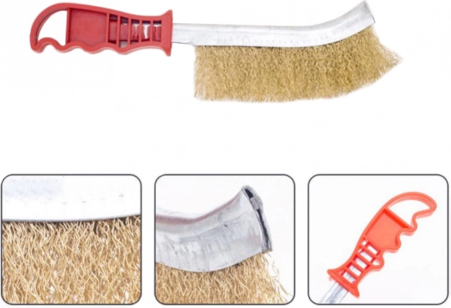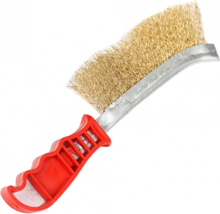 Universele draadborstel van messingdraad, ontworpen voor veeleisende reiniging van metalen en harde oppervlakken. Ideaal voor ontroesten, het verwijderen van oude coatings en voor het reinigen van randen, lassen en moeilijk bereikbare plekken. Dankzij de ergonomische kunststof handgreep ligt hij prettig in de hand en vermindert hij vermoeidheid bij langdurig gebruik.