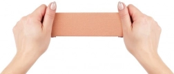 De stukken tape hechten gemakkelijk aan een droge huid zonder crèmes, zijn onopvallend en gemakkelijk te combineren met kleding.