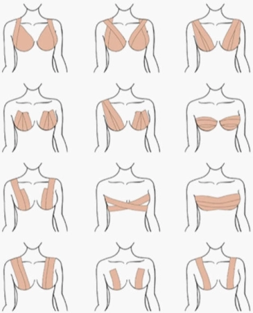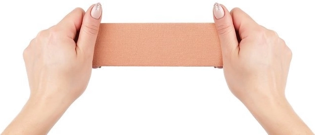 Deze tape is ontworpen voor universele ondersteuning die voldoet aan de eisen van elk decolleté en elke borstomvang.