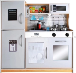 Gun kinderen hun eigen moderne keuken met tal van realistische details. De LED-verlichting kan onder of in het kastje of in de “oven” worden geplaatst voor een authentieke sfeer. Bij het draaien aan de knoppen van de kookplaten klinkt een karakteristieke “klik”, wat het spel een nieuwe dimensie geeft.