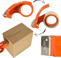 Deze dispenser is een geweldig hulpmiddel voor iedereen die vaak werkt met verpakken. Het maakt gemakkelijk afrollen en precies snijden van de tape mogelijk met behulp van het scherpe mes.