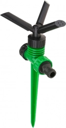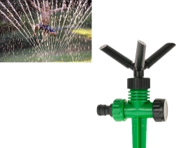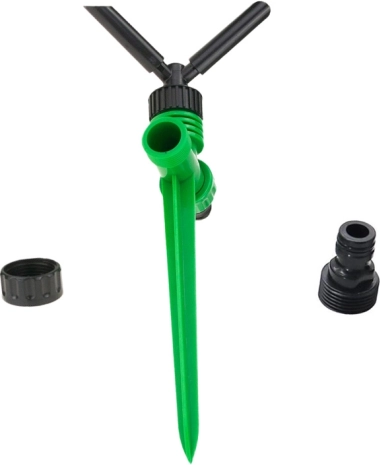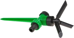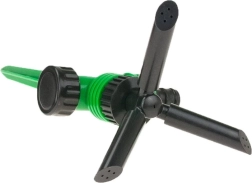 De roterende kop met drie armen verdeelt het water gelijkmatig over het hele gazon en de borders. Ideaal voor regelmatige bewatering zonder droge plekken.