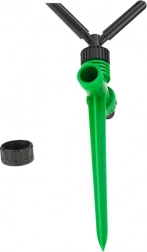 De automatische roterende/pulserende sproeier vernevelt water tot fijne druppels en verdeelt het gelijkmatig naar de planten. Dankzij de 360° roterende kop en drie armen bestrijkt hij gazons, borders en beplanting efficiënt en voorzichtig – zonder ongewenste overbewatering.