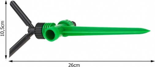 Installeren kost slechts seconden: duw de pen in de grond en sluit de slang aan via de snelkoppeling. De duurzame kunststof constructie is licht, gemakkelijk te verplaatsen en past dankzij de compacte afmetingen van 26 × 10,5 cm overal. Voor grotere oppervlakken kun je meerdere sproeiers in serie koppelen voor een perfect gelijkmatige dekking.