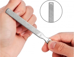 De getextureerde vijl vormt en verzacht de randen; de nagelriemduwer en elevator zorgen voor een precieze finish van manicure en pedicure.