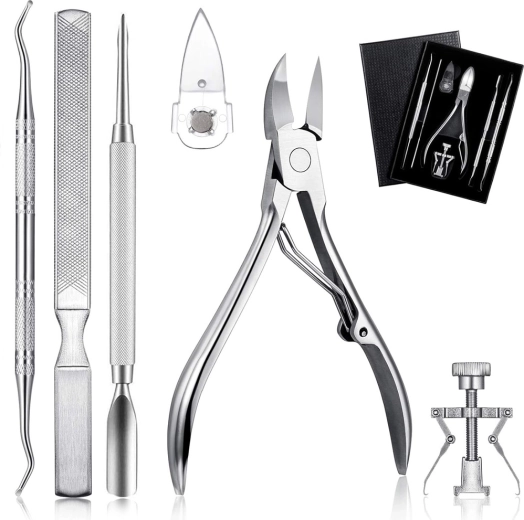 Complete set voor de verzorging van ingegroeide nagels aan handen en voeten, zodat u het probleem comfortabel thuis kunt aanpakken. Bevat precieze instrumenten van roestvrij staal, ergonomische nagelkniptang, corrector voor ingegroeide nagels, vijl, nagelriemduwer en elevator. Alles is opgeborgen in een elegante etui voor veilig en hygiënisch gebruik, ook onderweg.