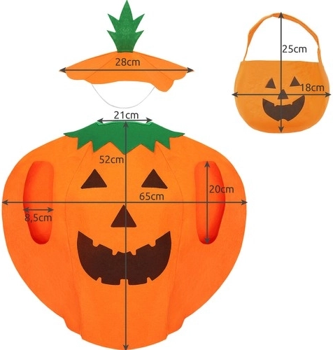 Wij presenteren u het perfecte kinderpompoenkostuum voor Halloween. Deze set is universeel door zijn afmetingen en past probleemloos bij zowel jongere als oudere kinderen. Het is ideaal voor feestelijke gelegenheden en brengt rust aan elk kind dankzij zijn comfort.