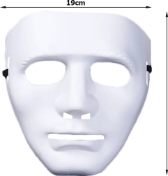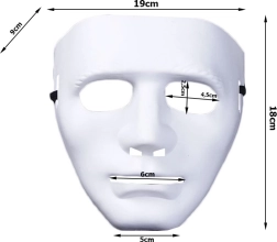 Dankzij de compacte afmetingen 19 × 18 × 9 cm is het masker gemakkelijk mee te nemen en klaar om je Halloween- of horrorkostuum compleet te maken. De minimalistische witte kleur laat zich eenvoudig combineren met diverse accessoires en kleding.