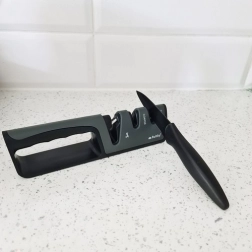 De lichte, ruimtebesparende slijper berg je eenvoudig op in de lade. Ideaal voor dagelijks onderhoud van keukenmessen en scharen.