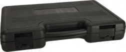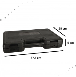 Stevige kunststof koffer met organizer houdt alle onderdelen op hun plaats en vergemakkelijkt transport en snelle selectie.