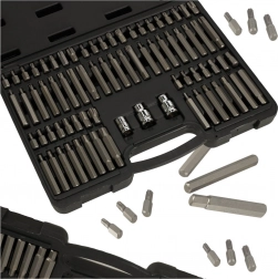 Een brede selectie HEX-, RIBE-, SPLINE-, TORX- en TORX Security-bits in korte en lange uitvoering, aangevuld met 3 praktische adapters.