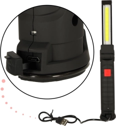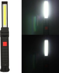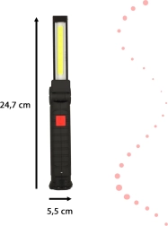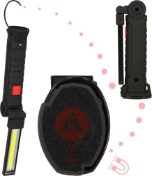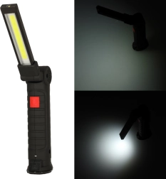Met een ergonomisch ontwerp en een verstelbare kop, kunt u gemakkelijk de lichtstraal richten voor nauwkeurige verlichting van de gewenste ruimte. Dankzij de magnetische basis kunt u de zaklamp eenvoudig bevestigen aan een metalen oppervlak, wat gemak biedt zonder de zaklamp vast te hoeven houden.