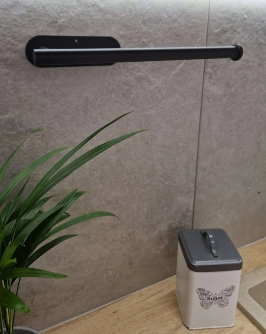 De zwarte metalen houder voor papieren handdoeken is de ideale oplossing om keukenruimte te organiseren. Het biedt gemakkelijke toegang tot papieren handdoeken en houdt het werkblad netjes. Esthetisch design past bij zowel moderne als klassieke interieurs.