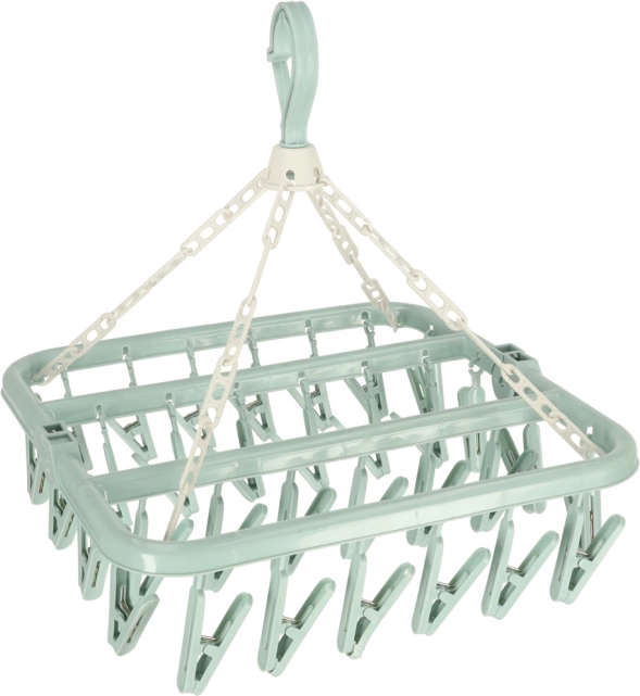 Universele plastic droogrek is een onmisbare hulp voor elk huishouden. Het bevat 32 knijpers die het drogen van een groot aantal kleine kledingstukken mogelijk maken. De compacte constructie maakt ophanging in de badkamer, op het balkon of op een grote staande droogrek mogelijk, waardoor ruimte wordt bespaard.