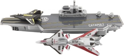 De set bevat drie modellen straaljagers die kinderen op het dek kunnen plaatsen of kunnen katapulteren.
