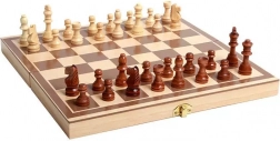 Deze veelzijdige set biedt drie klassieke bordspellen in één: schaken voor strategisch denken, dammen met eenvoudige regels en triktrak (backgammon) voor een dynamisch en spannend spel. Het opvouwbare houten schaakbord dient tevens als doos voor het veilig opbergen van stukken en schijven.
