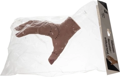Creëer thuis of op een feestje de sfeer van pure horror. Deze realistische afgehakte hand in een natuurlijke huidskleur met gedetailleerde littekens en naden trekt gegarandeerd de aandacht en zorgt voor schrik en vermaak. Perfect voor interieurdecoraties, Halloweenfeesten, spookroutes en als film- of theaterrekwisiet.