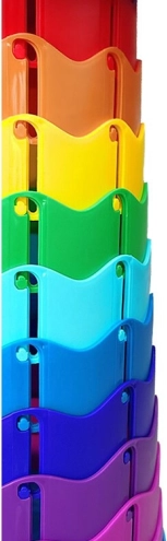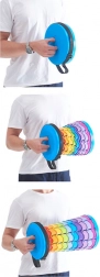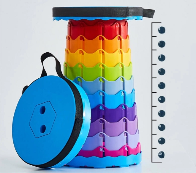 Uitklappen gaat intuïtief: pak beide handgrepen vast, trek uit en draai naar links; om in te klappen draai je naar rechts en druk je lichtjes samen. De verstelbare hoogte in 10 stappen (ongeveer elke 6 cm) maakt aanpassing voor kinderen en volwassenen mogelijk. De praktische schouderriem vergemakkelijkt het dragen en het kleurrijke design springt meteen in het oog.