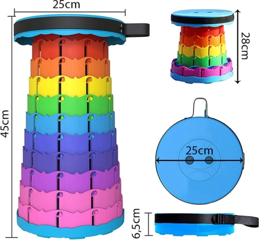 Deze draagbare telescopische kruk is de ideale reisgenoot. Je bergt hem eenvoudig op in een rugzak of auto en zet hem binnen enkele seconden klaar om op te zitten. Dankzij het stevige mechanisme vergrendelt hij veilig op de gewenste hoogte en biedt hij overal een stabiele en comfortabele zitplaats.