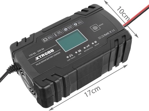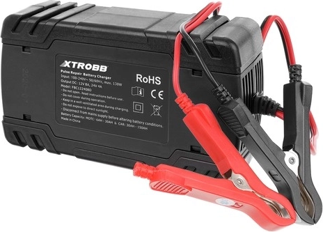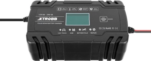 Compacte en krachtige XTROBB-acculader voor 12 V en 24 V met intelligente microprocessorgestuurde regeling. Biedt automatische spanningsdetectie, een pulserende reparatiemodus voor het herstellen van gesulfateerde of aangetaste accu’s en uitgebreide bescherming tegen ompoling, kortsluiting, overladen en oververhitting. Dankzij het touchpanel en het LCD-scherm is de bediening eenvoudig en overzichtelijk. Ideaal voor auto’s, motorfietsen, grasmaaiers en boten.