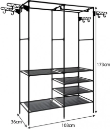 Zes planken, één kledingroede en acht zijkaken bieden plaats aan kleding, schoenen, dozen en accessoires. Het open ontwerp zorgt voor snel overzicht en gemakkelijke toegang.