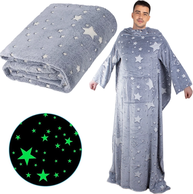 Ontworpen met ruime mouwen die je bewegingsvrijheid geven, glijdt de deken niet op de grond zoals gewone dekens. Bovendien zorgen de fluorescerende eigenschappen ervoor dat hij in het donker straalt – ideaal voor een unieke sfeer in huis.