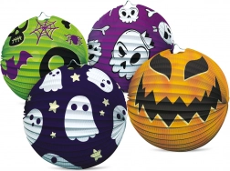 Creëer in een handomdraai een betoverende halloween-decoratie. De papieren lampion met een diameter van 25 cm heeft een geribbelde constructie, een metalen ophangoog en een print met opvallende halloween-motieven. Perfect voor themafeesten, carnaval, verjaardagen en als versiering van de kinderkamer.