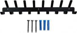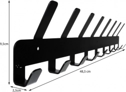 De kapstok is gemaakt van duurzaam staal en afgewerkt met een poedercoating die beschermt tegen corrosie en krassen. Geschikt voor binnen en overdekte entrees. De installatie is eenvoudig – in de verpakking zijn pluggen en schroeven inbegrepen; boor gaten met een 5 mm boor en schroef vast.