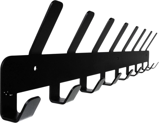 Orden jassen, vesten, tassen en accessoires overzichtelijk op één plek. Deze wandkapstok biedt 9 onderste en 8 langere bovenste haken, dus ruim voldoende capaciteit voor het hele gezin. Het minimalistische design en de zwarte uitvoering passen perfect in zowel moderne als klassieke interieurs.