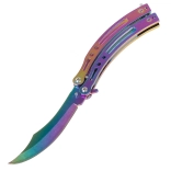 Dit prachtige vlindermes met iriserende afwerking is de perfecte combinatie van esthetiek en functionaliteit. Het heeft een veilig inklapbaar lemmet en een duurzame constructie, waardoor het een perfecte keuze is voor dagelijks gebruik of als verzamelstuk.