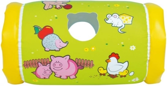 Een leuke en veilige opblaasbare rol voor de allerkleinsten die kruipen, stabiliteit en de eerste pogingen tot rechtop staan ondersteunt. Binnenin zitten drie belletjes die bij beweging zacht rinkelen en het kind tot activiteit motiveren. Het product is ftalaatvrij en gecertificeerd, geschikt vanaf 6 maanden.