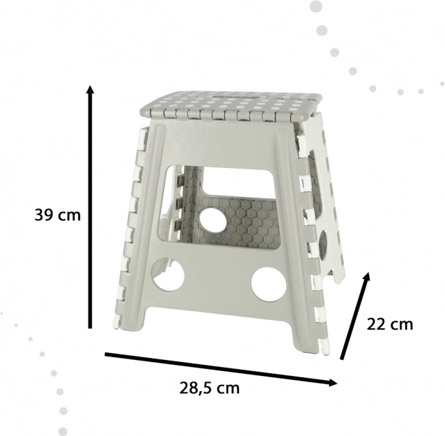 Het krukje vouw je in een handomdraai plat en dankzij de handgreep is het eenvoudig te verplaatsen. In opgevouwen toestand is het slechts 5 cm dik, waardoor het achter een kast of in smalle ruimtes past.