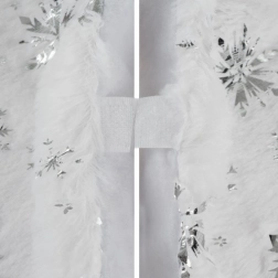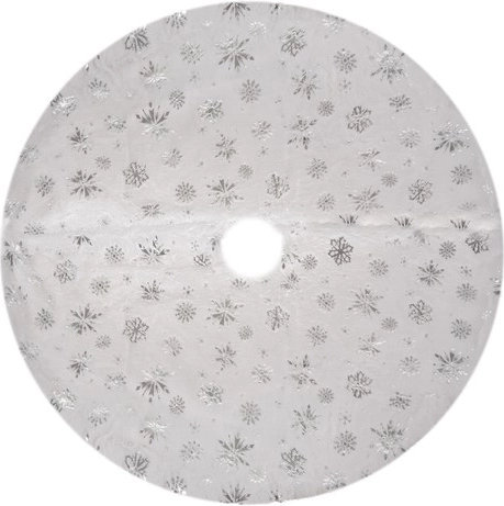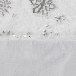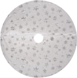 Voegt onder de boom een elegante decoratie toe die perfect past bij uw kerstinterieur. Met de witte kleur en decoratieve zilveren vlokken biedt hij niet alleen een fraaie uitstraling, maar beschermt hij ook de vloer en maakt hij het opruimen na de feestdagen makkelijker.