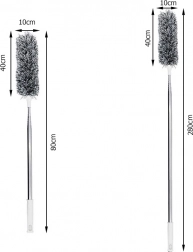 Met de telescopische stofveger wordt het verwijderen van stof een fluitje van een cent. Dankzij het telescopische ontwerp, dat tot 280 cm verlengd kan worden, bereikt u eenvoudig hoge plafonds, lampen en andere moeilijk toegankelijke oppervlakken. De lange haren verzamelen stof effectief, terwijl het lichte en praktische ontwerp de hantering vergemakkelijkt.