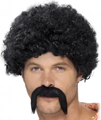 Geef je outfit extra impact en volume met de iconische krullen van deze afropruik in diepzwarte kleur. De realistisch ogende dichte krullen van duurzaam synthetisch materiaal creëren het effect van vol haar dat de hele nacht in model blijft.