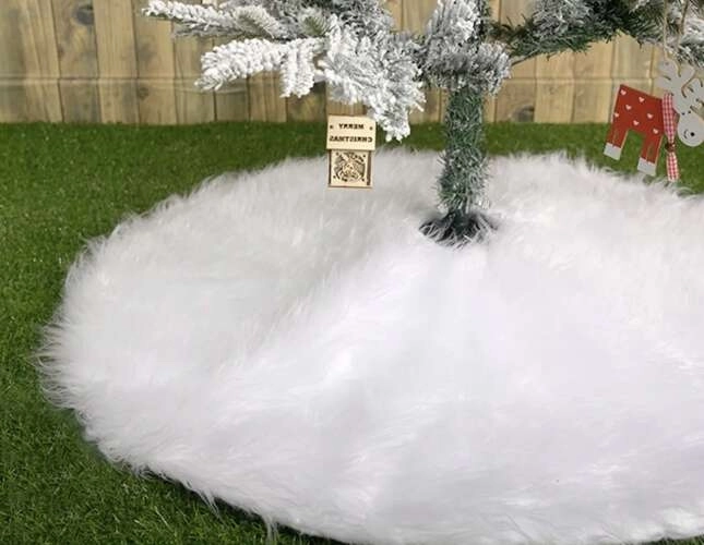 Deze elegante witte ondergrond voor de kerstboom geeft uw huis de juiste winterse sfeer. Het is gemaakt van langharig bont, dat buitengewoon zacht is voor de aanraking en een luxueuze uitstraling geeft onder uw kerstboom.