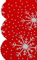 Versierd met een subtiel patroon van witte sneeuwvlokken en stippen, ideaal om te combineren met een wit tafelkleed of porseleinen servies.